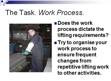 One of the problems preventing good manual handling techniques being adopted at certain companies is the work itself dictating the speed at which people have to move.